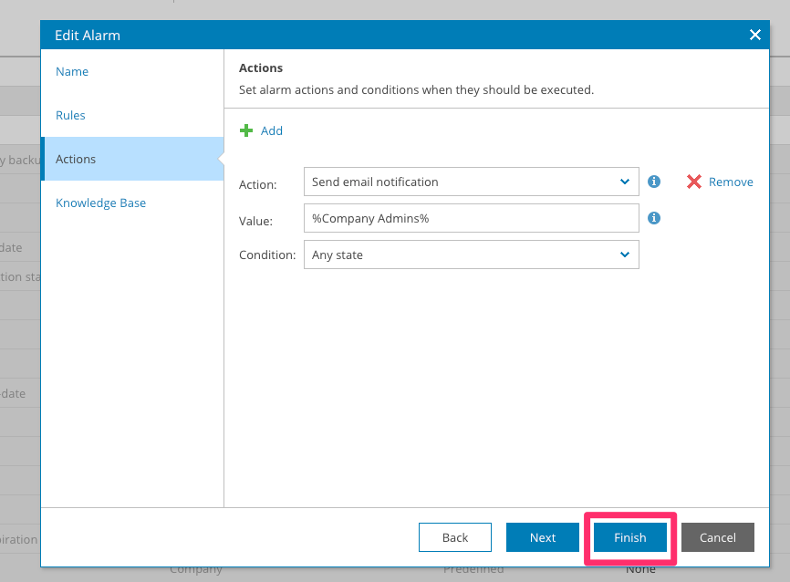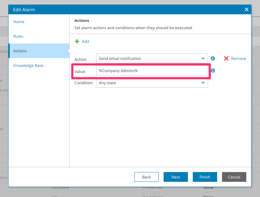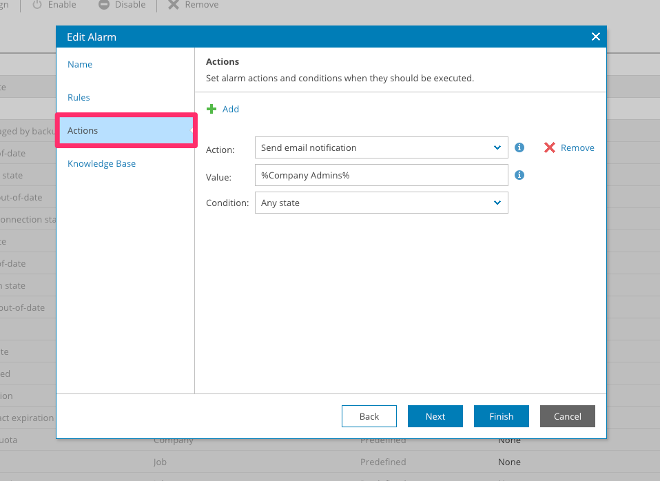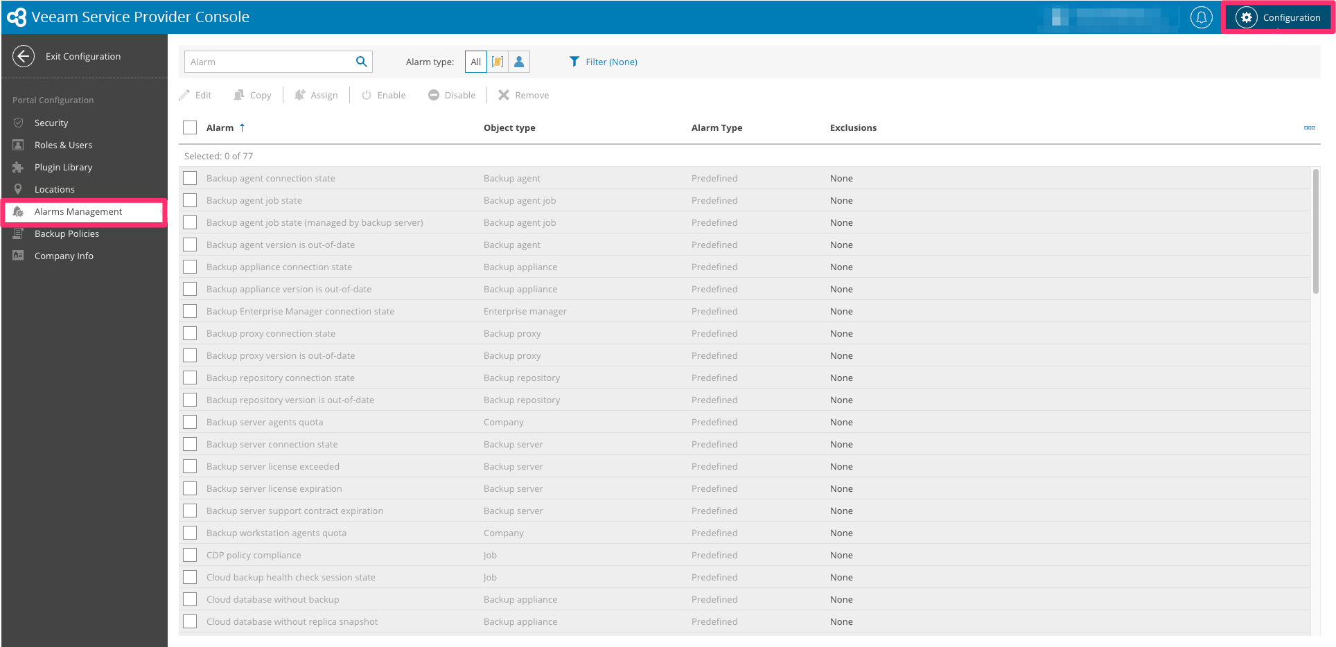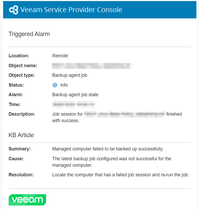 参考: Alarms - Veeam Service Provider Console Guide for End Users