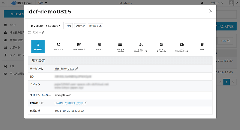 こちらが、CDNのサービスIDとなります。 CDNの設定画面の基本設定のIDを確認します。