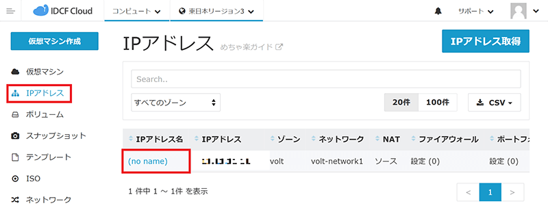 [IPアドレス]→[IPアドレス名]をクリックします。
