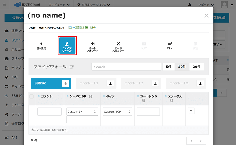 IDCFクラウドでは、ファイアウォール機能を標準(無料)でご利用いただけます。