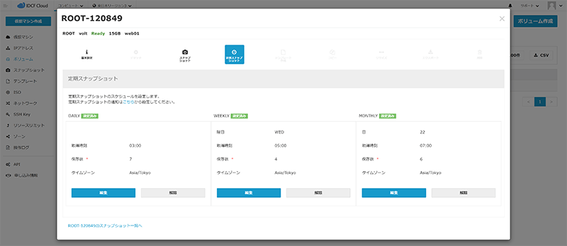 以上で、定期スナップショットの作成は完了です。