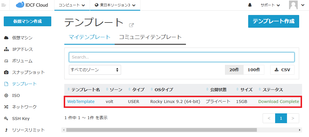 - テンプレート一覧より、作成したテンプレートを確認します。