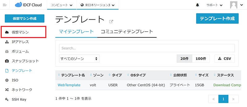 手順「2. テンプレートの作成」で作成したテンプレートから仮想マシンを作成します。