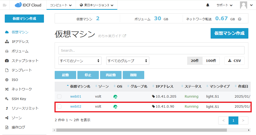 - 「仮想マシン」画面に「web02」の仮想マシンが追加されます。