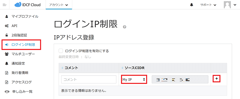 注意点) ログインIPは固定IPアドレスで行うようにしてください。