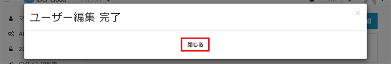 - ユーザー編集完了のポップアップ画面が表示されますので[閉じる]をクリックします。