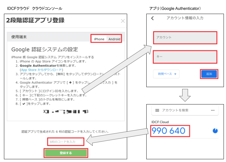 事前に、ご利用の端末に2段階認証用のアプリをインストールしてください。iPhoneの場合は Google Authenticator、Androidの場合は Google認証システムです。