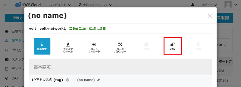 - IPアドレス詳細画面の[VPN]タブを選択します。