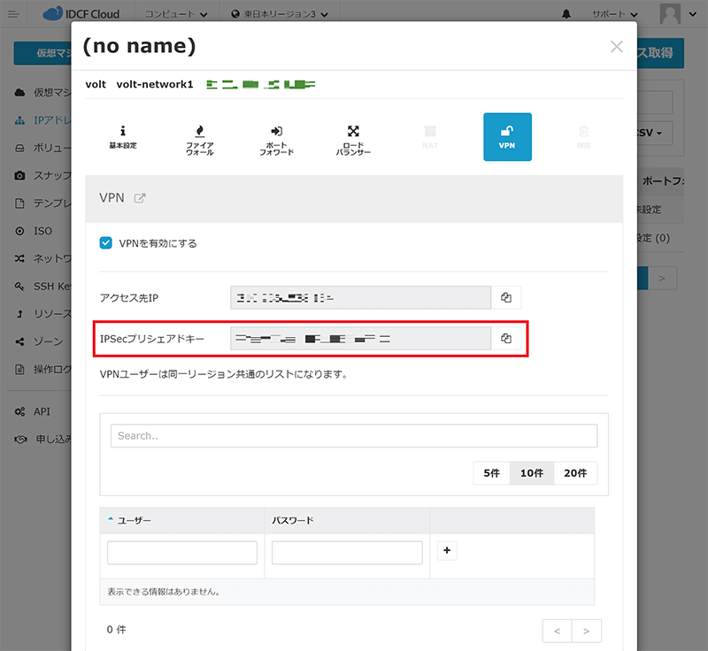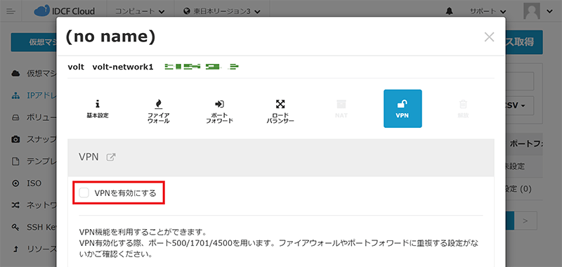 IDCFクラウドのリモートVPN機能の有効化の手順を紹介します。