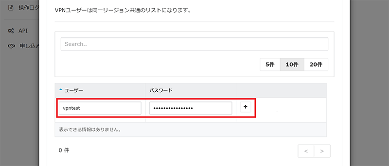 - 「ユーザー」と「パスワード」を任意で入力し、[+]ボタンで登録します。