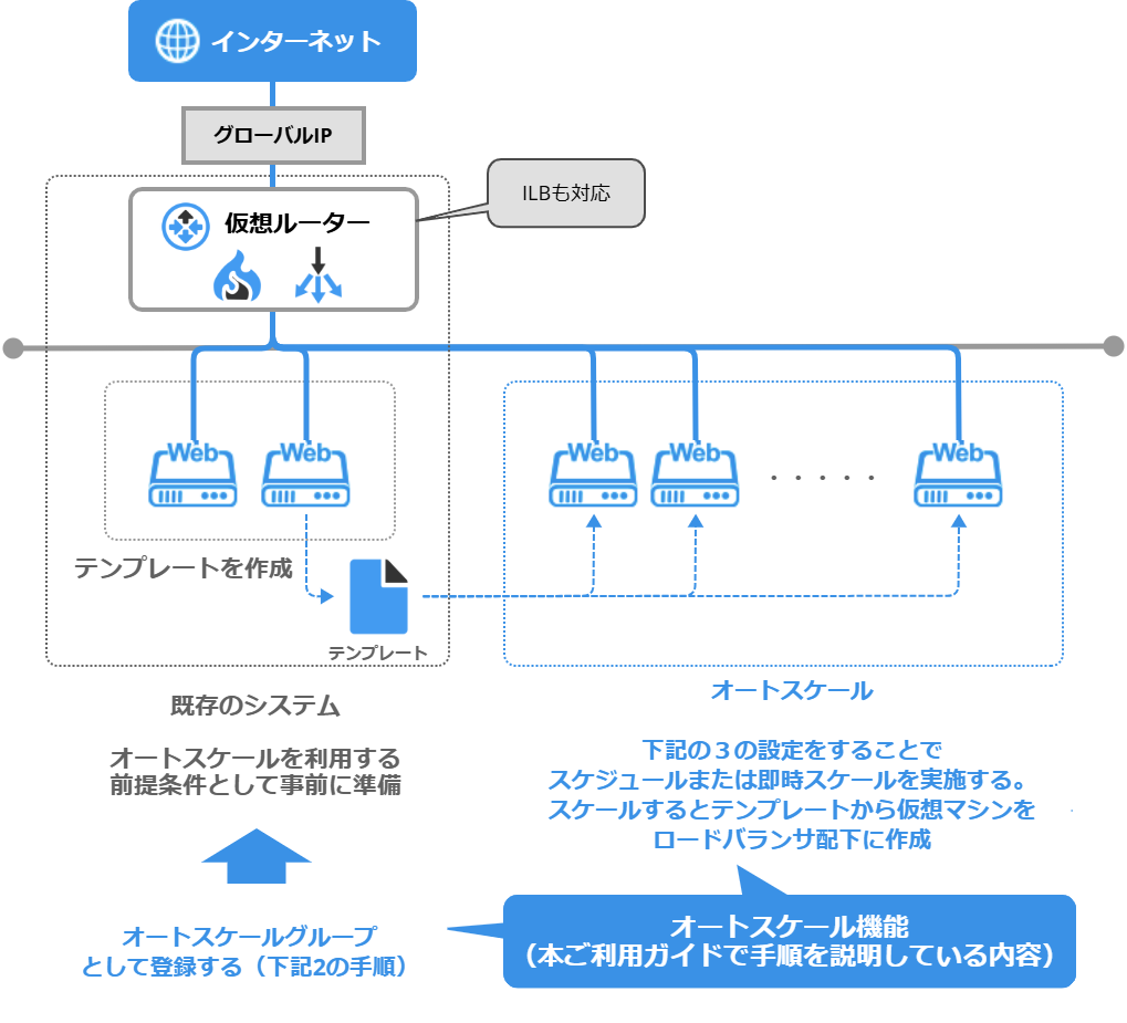 本マニュアルでは、活用マニュアル「スケーラブルなWebサイトを構築したい(Web2台構成)」で作成した構成にオートスケール設定を追加し、より柔軟な構成で運用するケースを紹介します。