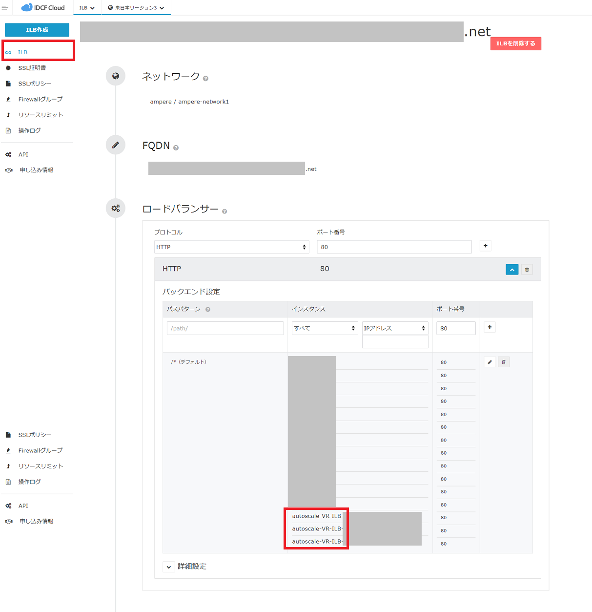 ILBの作成方法は「インフィニットLB」を活用したWebサーバーの負荷分散 の 「1. インフィニットLBの作成」をご参照ください。 - フロントエンドプロトコル、フロントエンドポート番号、バックエンドプロトコル、バックエンドポート番号をクラウドコンソールから取得してメモしておきます。