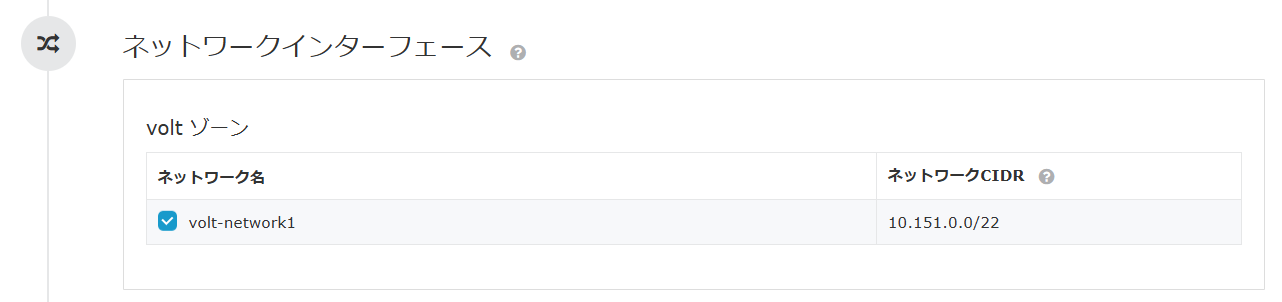 volt-network1を選択します。 ※LB設定を選ぶと使用しているネットワークが自動的に選ばれるようになっています。