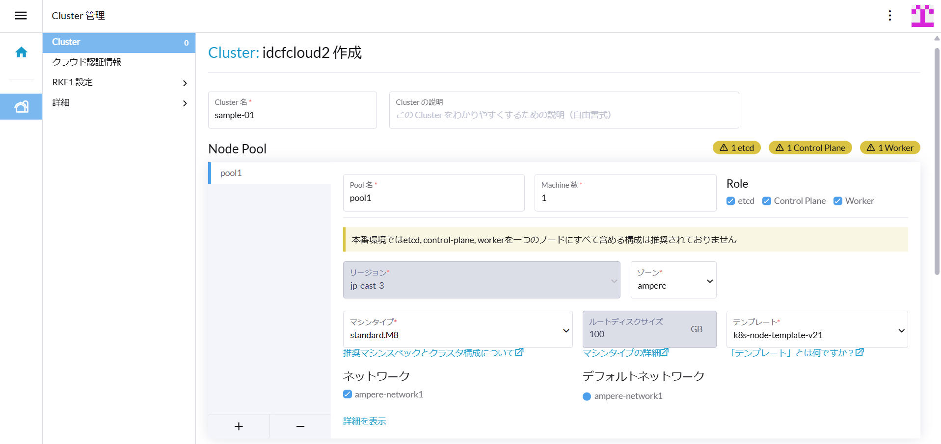 | Node Pool | 各種ノードプールの設定を行います。 |