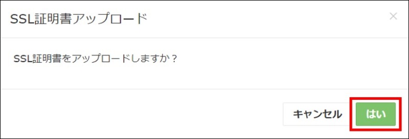 - SSL証明書のアップロード確認メッセージが表示されます。「はい」をクリックします。