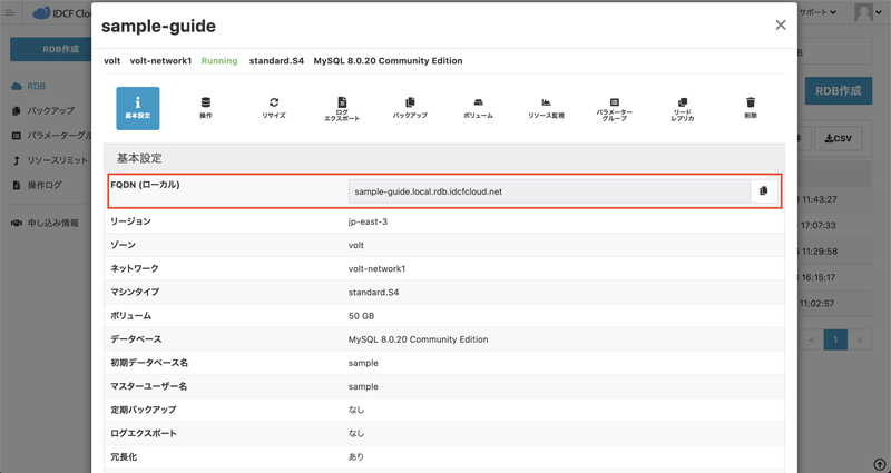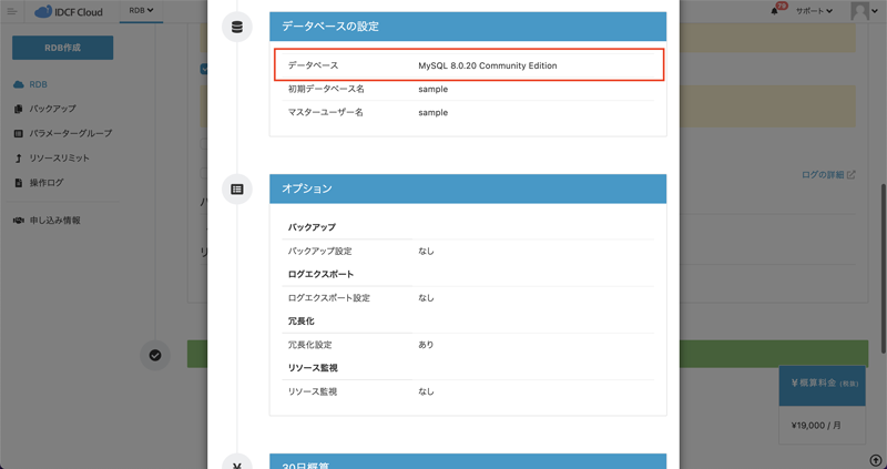 ※MySQL8.0のRDBはMySQL5.7のRDBと同一のネットワークで作成する必要があります。