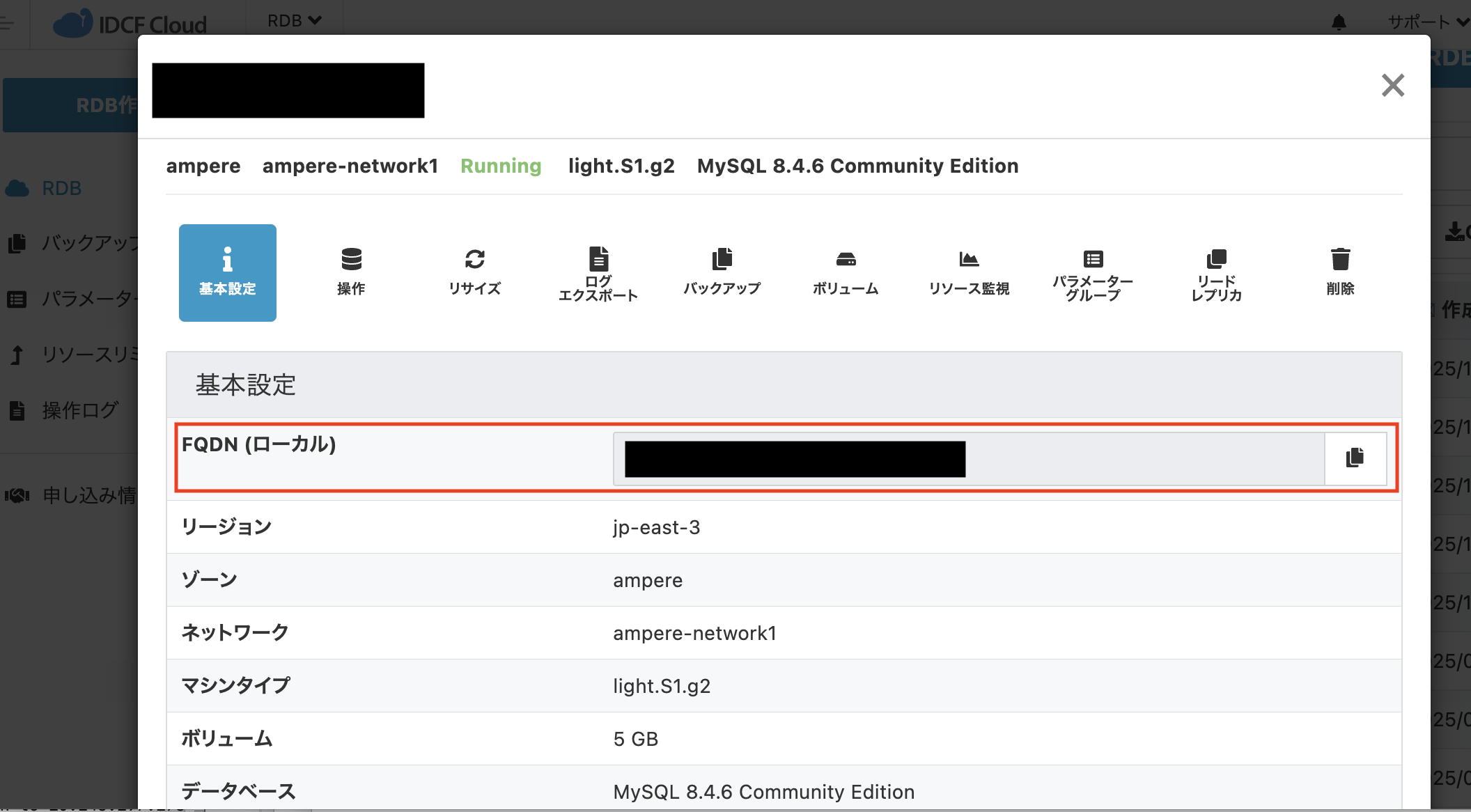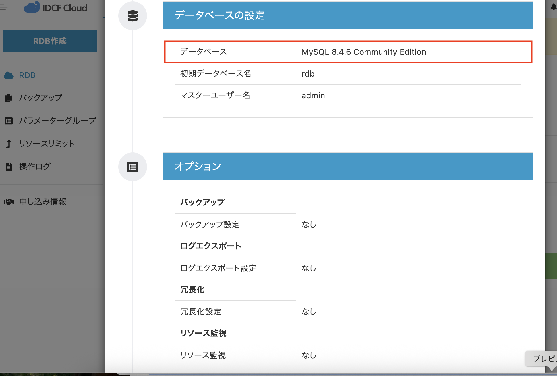 ※MySQL8.4のRDBはMySQL8.0のRDBと同一のネットワークで作成する必要があります。