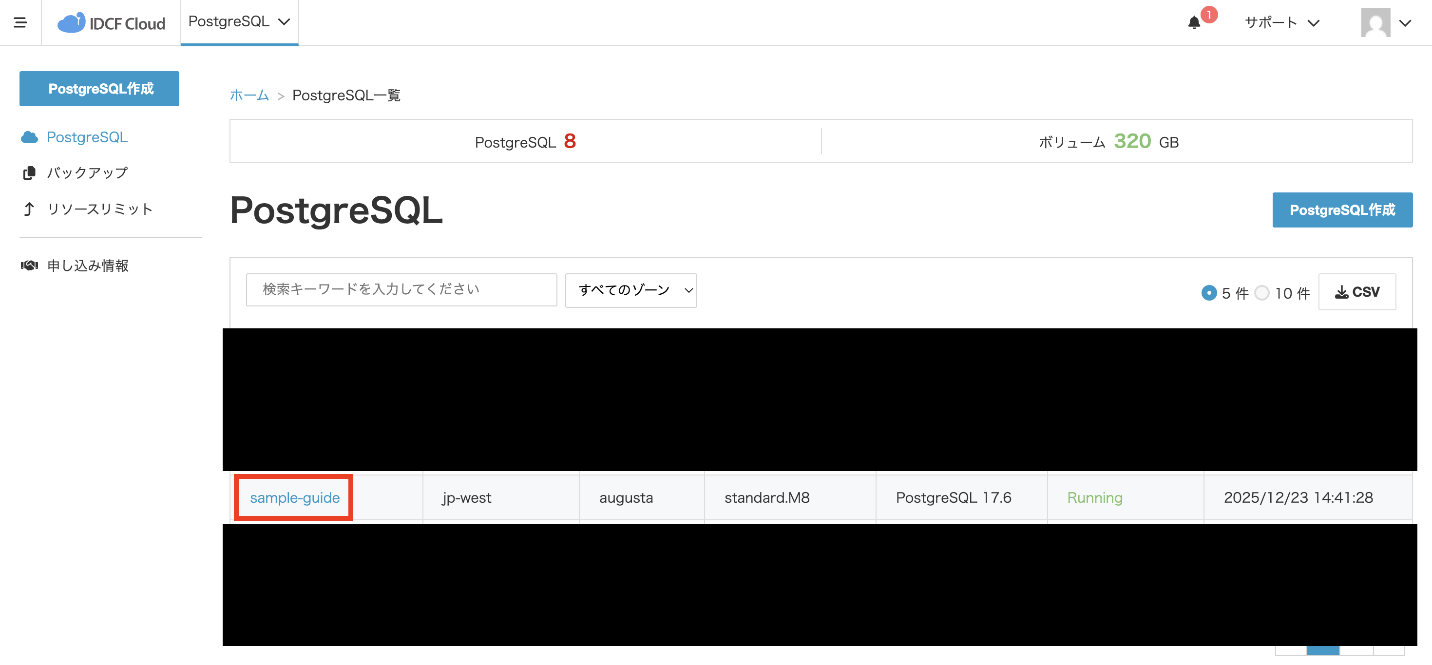 正常に削除が行われた場合はRDB一覧から対象のRDBの表示がなくなっています。